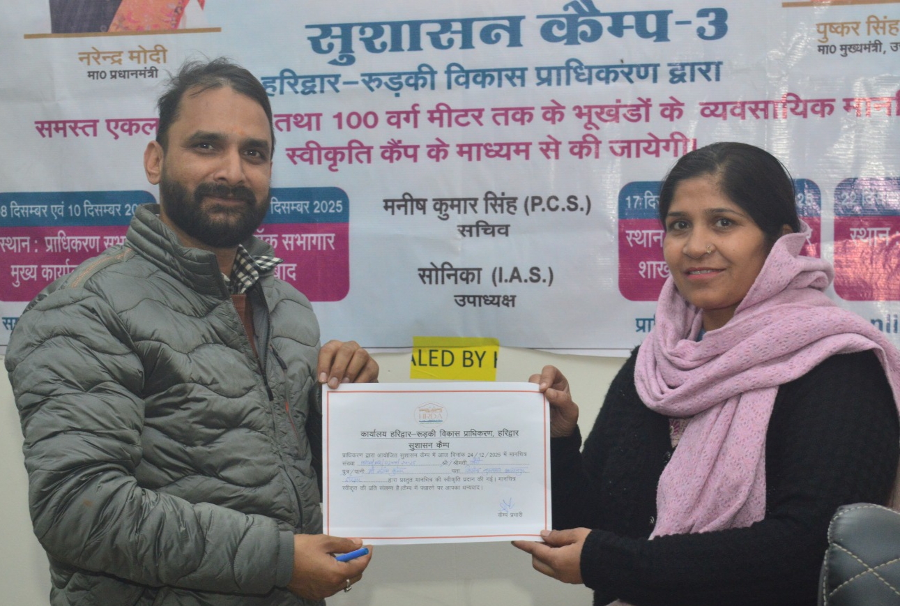 माननीय मुख्यमंत्री श्री पुष्कर सिंह धामी के सरलीकरण, समाधान, निस्तारण एवं संतुष्टि के मंत्र को आगे बढ़ाते हुए हरिद्वार–रुड़की विकास प्राधिकरण (HRDA) द्वारा आज सुशासन कैंप का सफल आयोजन तहसील भगावनपुर के सभागार में किया गया। इससे पूर्व भी दो सुशासन कैंप आयोजित किए जा चुके हैं।